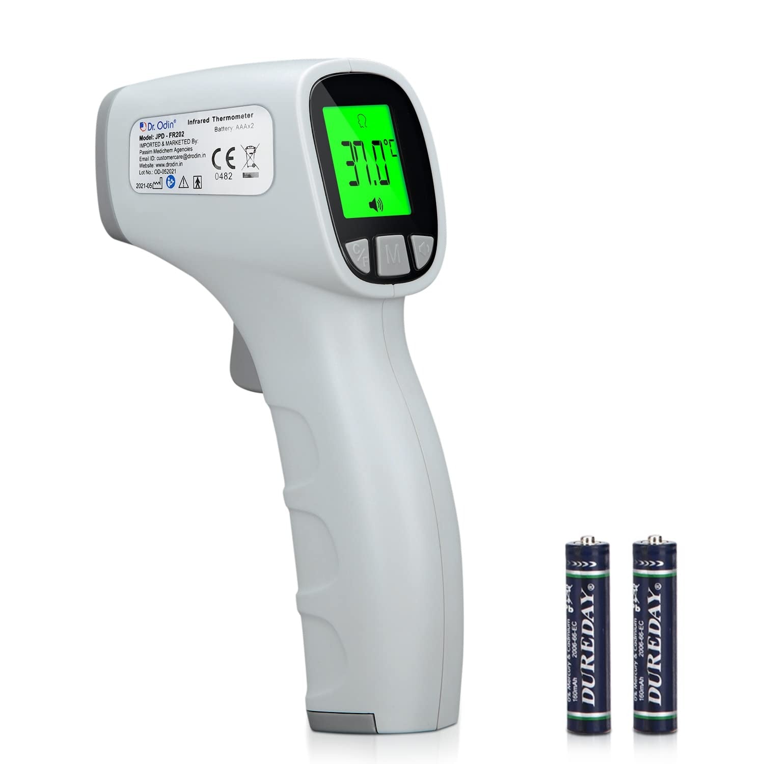 Dr. Odin JPD-FR202 Digital Non Contact Infrared Forehead Thermometer For Body Fever Kids Audlts & Babies With °C and °F Switchable Function, 1 Second Reading, 3 Color Screen, 20 Reading Memory-White